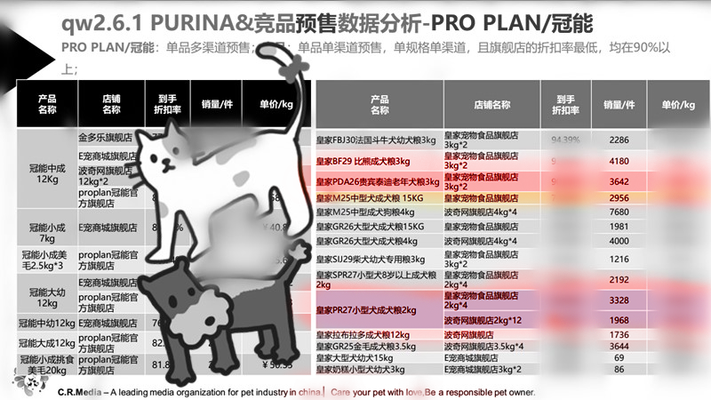 在2018年11.11期间的雀巢竞品互联网营销策略数据分析中,驰锐传媒数据分析师ANN及数据分析师团队,通过ALIBABA平台活动预热、预售开始,至11.11当天不间断的监测竞品间大促折扣、平台津贴、店铺优惠券、产品组合销售等互联网营销策略,得出的报告结论,也恰好验证了宠物主粮市场趋势,与雀巢PURINA产品上新政策相吻合。